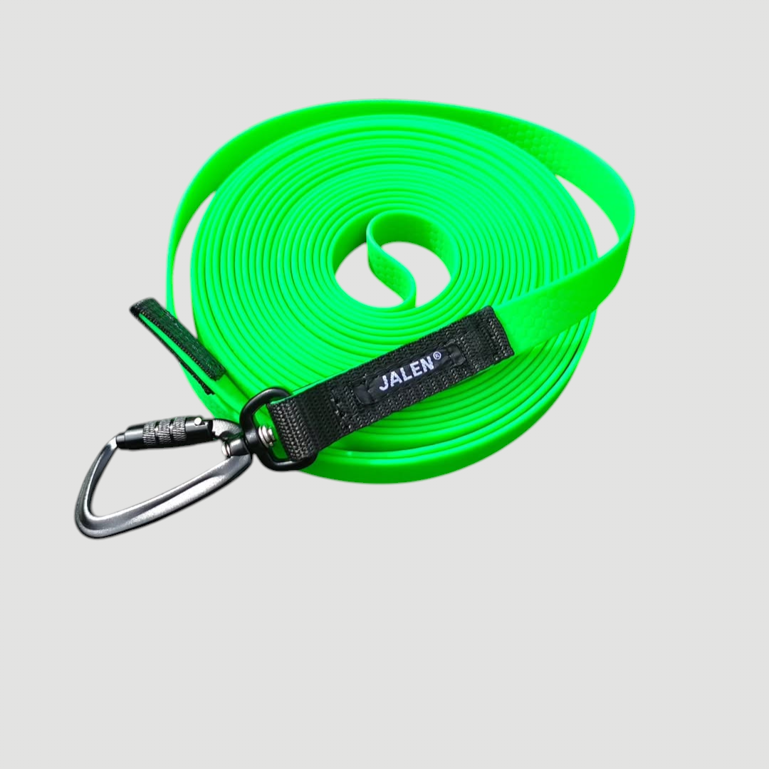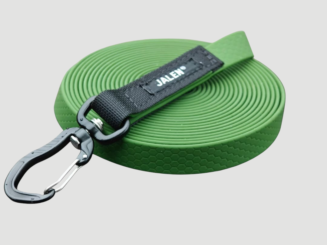 Pinta on helppo pyyhkäistä puhtaaksi. Se on kulutusta kestävä, 100% vedenkestävä, eikä veny, ei jähmety pakkasella eikä se ime kosteutta, joten se sopii erinomaisesti koirien taluttimiin ja treeniliinoihin.